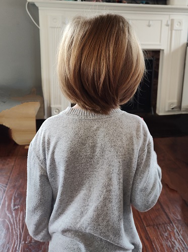 Andrew got a haircut a few weeks ago. I had to work, so Sam brought Ella. She kept saying she wanted her hair cut. Now she’s had the ends trimmed a few times, but that’s been the extent of it.