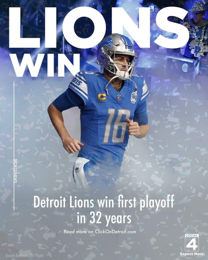 I can’t believe they have never won a playoff game! How fitting with Matt Stafford…I felt sorry for him in some ways but I’m happy the Lions won!