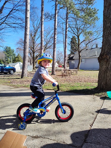 This morning, we got up and had some errands to do before I had to head to work. The kids saw the neighbor girls out last week on their bikes and roller skates. Neither of the kids has a bike, and they asked about them. While we were out, we picked them each up one with training wheels.