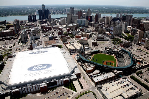 Those words certain have a lot of truth to them. The city of Detroit has really turned around over the past decade or so. Downtown is thriving. Ford Field (Lions) and Comerica Park (Tigers) are right across the street from each other, and from the street you can see that amazing Detroit skyline.