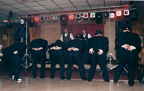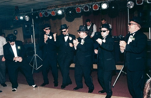 I got Blues Brothers hats and sunglasses and had a radio buddy put together an intro that was played before we came out to dance. They guy who did it produced this 5 minute long thing that was a bit much. Thankfully, the crowd forgot all about it when we came out and danced.