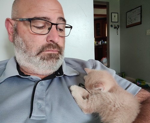 She posted the photo on Facebook asking for folks who wanted to give these kitties a new home. Within five minutes, I received a video call from my wife and kids. When I answer the phone, Andrew says, “Daddy. Can we please get the tan kitty?”