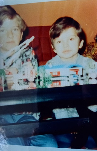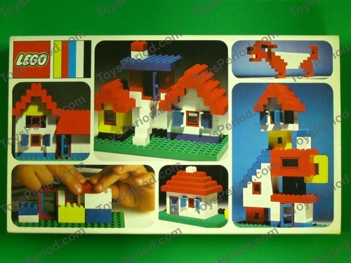 I had a very large box of mixed blocks and house accessories like windows, and a case that had extra ones from smaller kits I’d been given. I mostly loved building little houses with it. The blurry picture at the top shows me (on right) at probably three or four years old, with my older brother and some of our Lego creations. You can vaguely make out a little white house with blue roof I’d built, in front of me. And as an added bonus, don’t miss that early-’70s orange wall color! I had hours of fun building the houses, making each one look a little different. Sometimes I’d even draw a sort of floorplan for a house – bedroom here, living room there, door here – on paper and try to build one with Lego. When done, I’d maybe keep it on my desk or a table for awhile, then carefully take it apart and build something new.  Every once in awhile, for a change, I’d take the base board that I usually built the individual house on and would stack up blocks into little skyscrapers and create a sort of city skyline, viewed from afar. And the wheels allowed me to change it up and build little cars or vans from my imagination too.