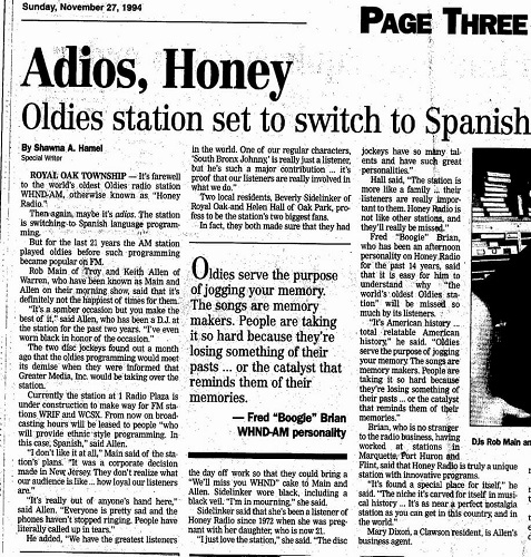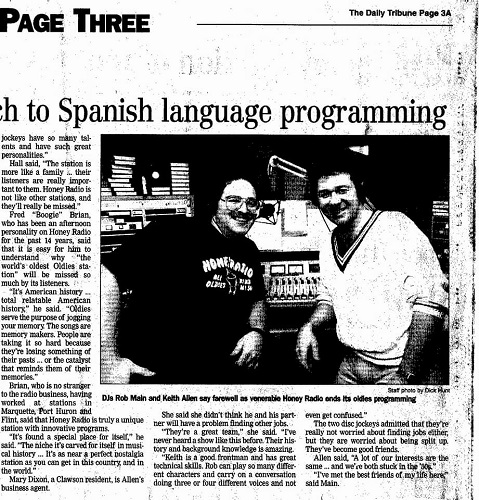 My partner Rob Main and I walked into the studio of WHND to begin what would be the last week of live broadcasts from Honey Radio.  We had heard the news weeks prior to this that the radio station was going off the air in favor of Spanish programming.  When the station was not broadcasting from our studios, we were airing satellite programming from the Cool Gold Network, which was no longer going to providing services. Honey was no longer financially viable.
