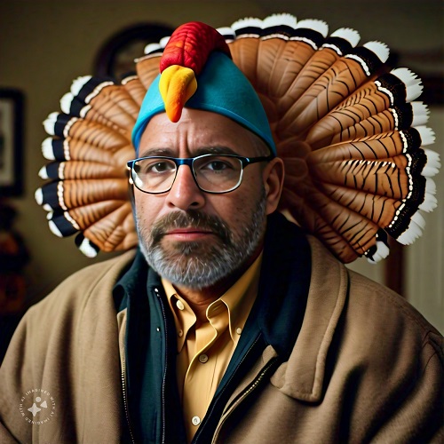One week from today is Thanksgiving. So I asked AI to make me in a turkey hat.