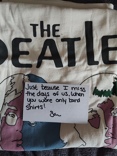 Back when we first started dating, my wardrobe was a lot of “band shirts.”. AC/DC, Beatles, Rolling Stones and others were all my daily wear.