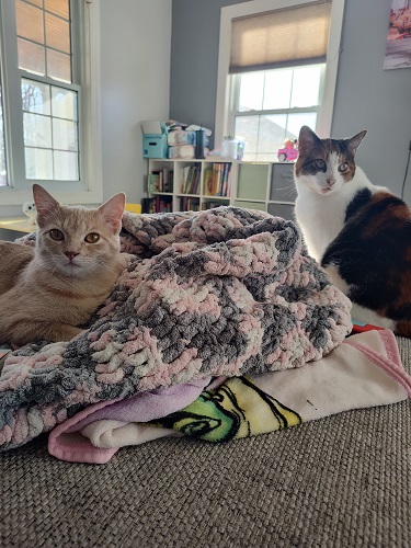 Gee, doc, I’m not sure why I can’t sleep… I swear, even when I’m just trying to enjoy a cup of coffee on the couch, these cats are there!