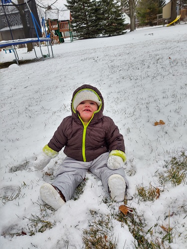 Andrew is all about going outside no matter what the weather! He’s a snowballer. He loves to throw snow balls.