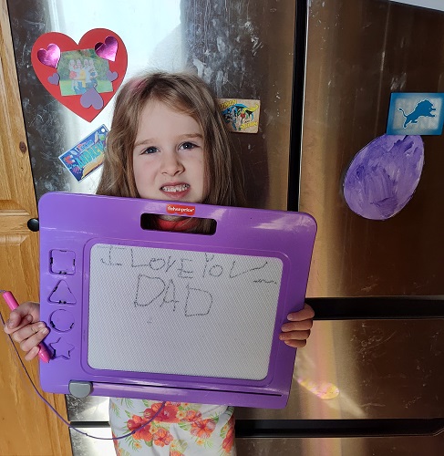 When we got home, we had hot chocolate and relaxed. I made myself some coffee and Ella came up behind me and said, “Dad, look.”