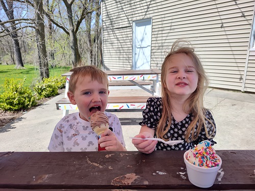 Monday it was beautiful. On the way home from school, I took the kids to get ice cream. We were the only ones there at 12 noon. It was nice to just hang out with them enjoying a treat.