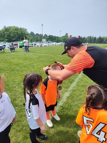 The team that he played on wasn’t really playing games against another team.  It was a lot of basic stuff like kicking the ball, rolling the ball back, passing the ball to another player, and throwing the ball in for play.  Those things were accomplished with games like Simon says and stuff like that.