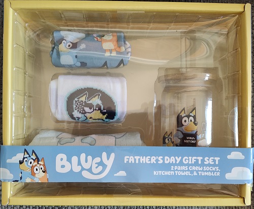 I plan on taking the tumbler to work to keep water in. I have already hung the dish towel in the kitchen and I will wear my “dad” socks to work this week!!