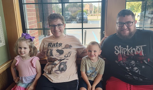 About an hour and a half before we were supposed to meet, he texted and asked if we could go to Applebee’s instead. I told him we could, but I wasn’t sure how the little ones would behave. I shouldn’t have worried as they did well. They truly love seeing their big brothers. They always seem to rush them for hugs when they see them.