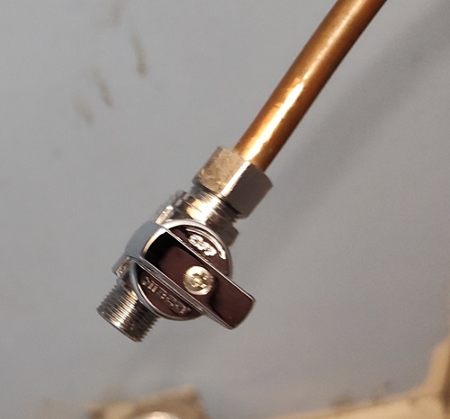 I get home, finagle the flare took on the edge of the pipe (after cutting off the shut off valve). I do what he said and Bingo, the end of the line is flared. I slapped on some of the sealer and began screwing everything back together. I poured some soapy water over it to see if there was a leak and there was a small one. After a couple cranks with a wrench, I checked again and was happy to see there was no leak.