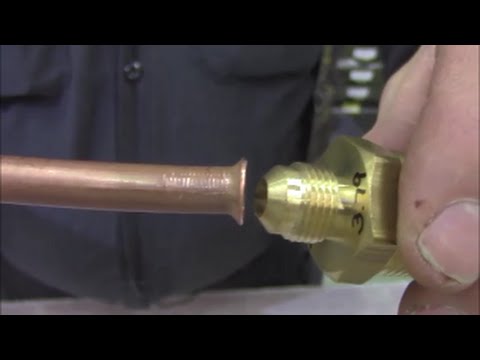 He took me in the back and grabs a piece of pipe and this “flarer” tool. He shows me how you put it on the end of the pipe and turn this handle to make the end flare.
