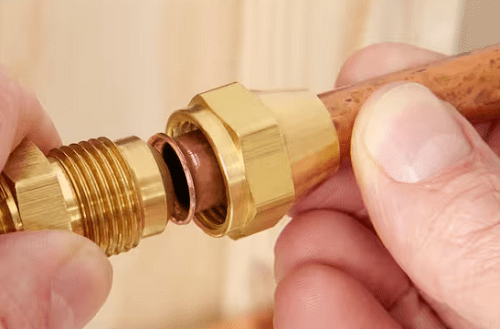 He said, “Oh, wow. You can’t do that. That is illegal. That is for water lines.” So now, I am really frustrated. He goes and he pulls out a couple fittings. He asks if I know how to flare the pipe. I gave him a blank stare. I have no idea what he means.