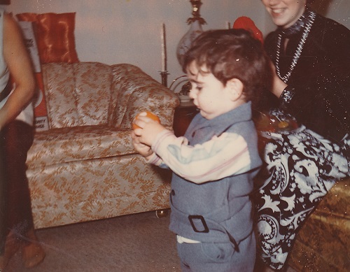 That’s my mom behind me. I wish there was more of her face in the picture. I love her smile here. I am guessing that my grandma is sitting on the couch in front of me.