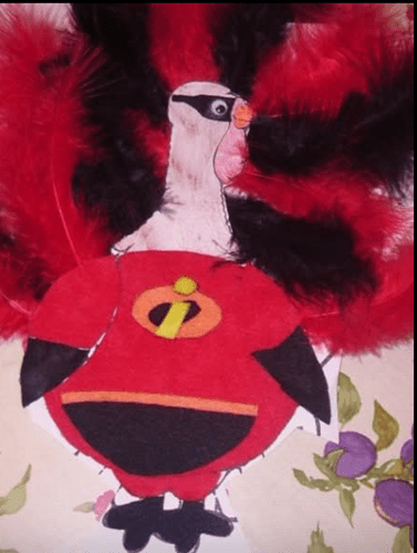 Back in 2007, I doubt Pinterest was around and I don’t think you could Google “Turkey Project” and have hundreds of photos come up with ideas. When we asked my oldest son what he wanted to disguise his turkey, he said he wanted him to be Mr. Incredible.