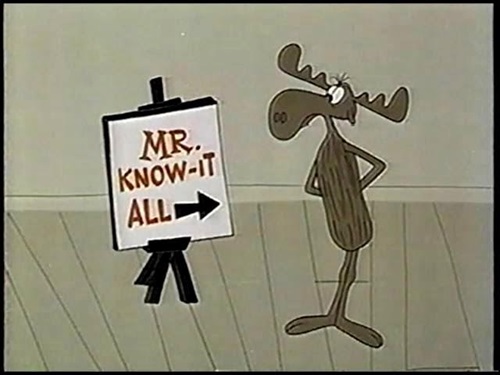 In between the various acts of the show, we’d be treated to Bullwinkle as Mr. Know It All. He would claim to be an authority on just about any topic. Things never seem to go his way in the segment.