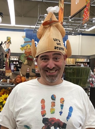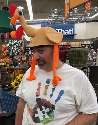 On one of our early fall stops there, I remember Sam had been in one area of the store looking at some things while I was in another area. I spotted something that I thought would make her laugh. So I put on this ridiculous turkey hat and just kept walking around the store until she spotted me. Surprisingly, she didn’t ignore me (which she had every right to). She chuckled and probably told me to take it off. So I did, and immediately put on another one.