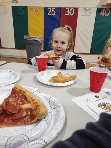 They had a little pizza party for all the volunteers. We got a brief overview of the program and got information on how to get our T-Shirts. While we were there, I was amazed at how many people (kids and adults) knew Ella. Kids from all grades were coming up and saying hello. The dad who sat at our table said, “Oh, we hear all about Pamela every day after school.” She’s a social butterfly.