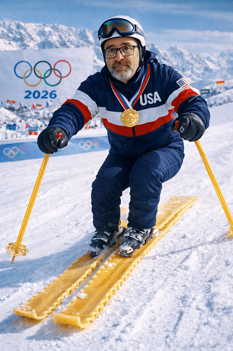I took the gold in the downhill lasagna run. It’s not easy skiing on ricotta…