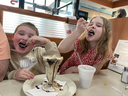 We stayed at the pool for a bit before we grabbed a bite to eat. There was a coney place across the road from our hotel. After dinner the kids got dessert.