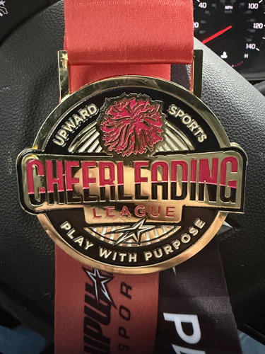 Last week my daughter cheered for the last basketball game of the season. She truly enjoyed learning the cheers, shaking the pom poms, and yelling in her cheerleader cone. They had said that the teams would be getting medals at the end of the night, but we had no idea that the cheerleaders would too.