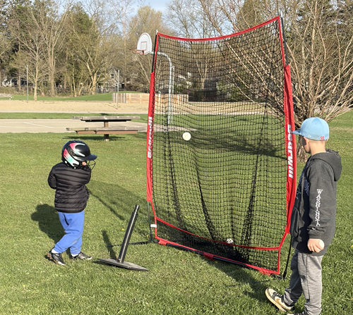 They each took turns hitting into the practice net. Andrew was really connecting – not bad since this is his first time.
