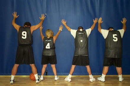 I found some more Moose pictures that made me laugh this week. I am not sure if this was for a charity event or if it was a St. Jude Fundraiser. Our staff was asked to play in a basketball game. They got us uniforms with the station logo on the front and each of us had part of “94.5” on the back.