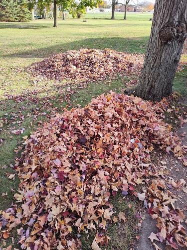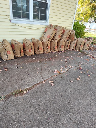 Once this was done (three hours later), I decided to start bagging leaves. I had gone out and bought bags and was finally able to start getting them up. I must have looked like a fool, as I was using my snow shovel as a “dustpan” for the leaves! It fits perfectly in the top of the leaf bags and makes it a little less messier.
