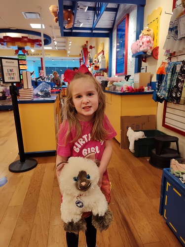 She had really hoped to go to the Children’s Museum, but it was closed. So we decided to take her down to Build a Bear where she could pick her own animal, stuff it and pick an outfit. She loved every second.
