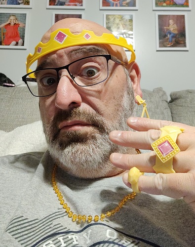 Basically, the game is like the game Cootie. You spin the spinner move along the board and collect your earrings, your ring, your necklace, your bracelet and finally the crown. Collect all of those without having the “cursed ring” and you win.
