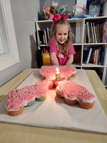 They loved it, though and they will always remember that! On the way home we had to stop by Nana and Pa’s house to pick up her “Mermaid tail” cake. Nana made it out of cupcakes and she was thrilled with it.