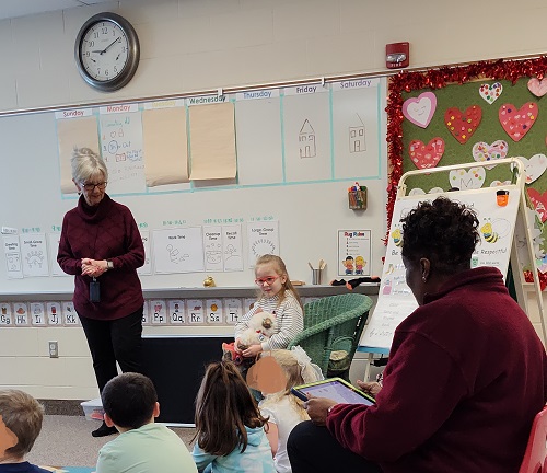Tuesday morning, she couldn’t wait to show her class her cat! Her teachers were nice enough to let her sit up front and tell her story about building the kitty and she passed it around. I was there because she wanted me to make sure that the cat made it home safe. She wanted her to be ok when she got home from school.