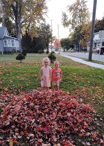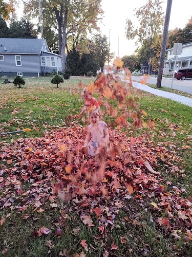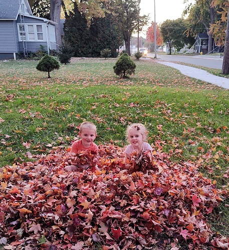 They saw me making a pile on the front lawn and this became their obsession. They had to jump in the leaf pile! They were actually walking with handfuls of leaves over to the pile and adding them to it.