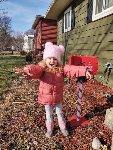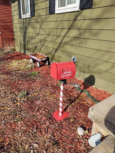 You may remember this from last year. One of our neighbors puts out a mailbox for kids in the neighborhood to mail letters to Santa. Each child receives a response. The kids love to go there and drop the letter in the mailbox.