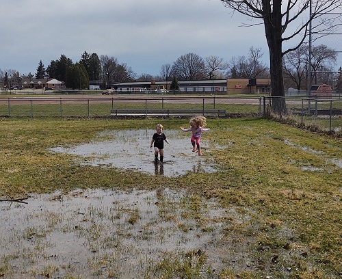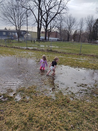 I have to give credit where credit is due – my wife is the “fun” parent. I really don’t think that I would have been the one to say, “Let’s put on your rainboots and go jump in the puddles!” to the kids. She did! Ella lit up! She couldn’t wait to get outside. Andrew was just as excited.