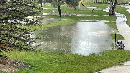 We have had a lot of rain over the past couple days. It has rained so much that the small city park near us was completely flooded!