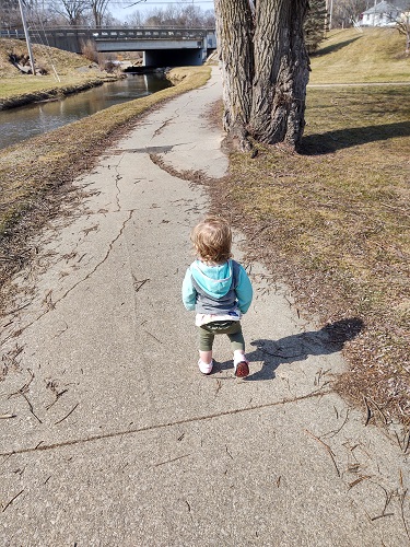 She isn’t quite yet to the point where she will walk and hold our hand. I am really looking forward to that and more walks this spring and summer!