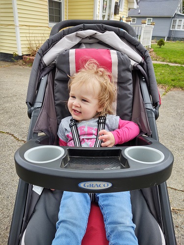 We have a small house. Ella looks forward to car rides and just getting out of the house. Today, while I napped before work, Sam took her out for a walk. She was going to put her in the stroller, but now that she is walking, that is what she wanted to do!