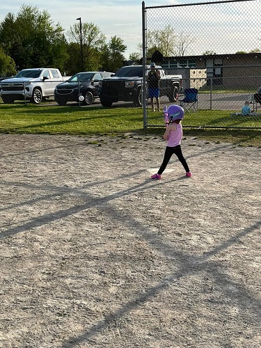 Every kid gets to go to first base and advance a base with each batter. When the team’s last batter comes up and hits, everyone runs home.