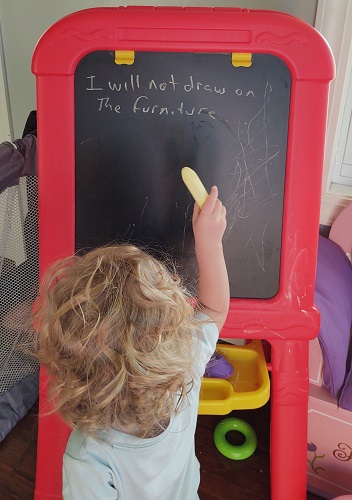 This probably won’t stop her from drawing on the furniture … but it was worth a try!