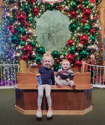 I hadn’t thought about it but this was Andrew’s first trip to Bronner’s. He was in awe of all the lights and him and Ella were anxious to touch everything!!
